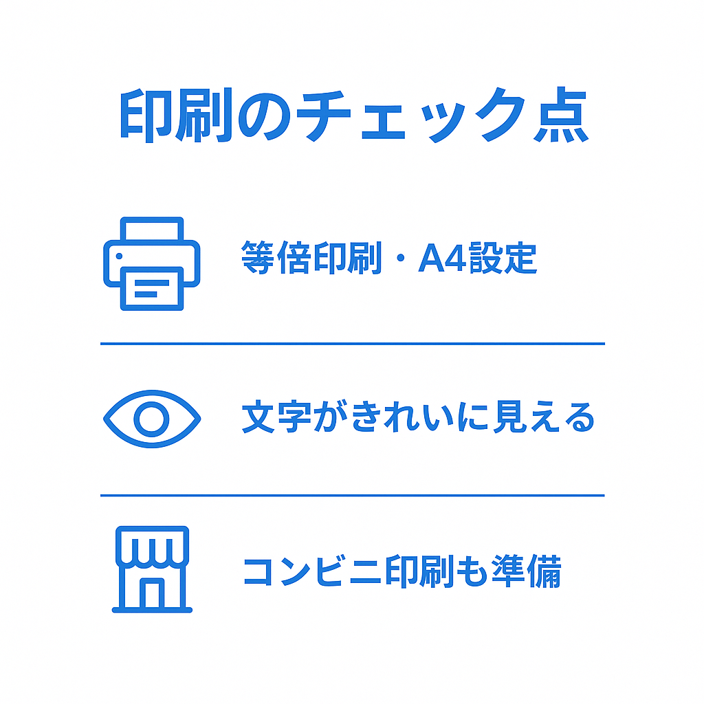 実務で効くのは「印刷テストの前倒し」と「代替手段の確保」。出願サイトのサンプルPDFや、学校が出している体裁見本で一度プリントし、A4/片面/等倍(100%)/自動拡大縮小オフなどを確認。姓の表記(漢字・カナ)や生年月日、受検番号の視認性も確認しましょう。プリンタが不調な場合に備え、最寄りのコンビニ店舗・マルチコピー機の操作手順を家族で共有しておくと安心です。