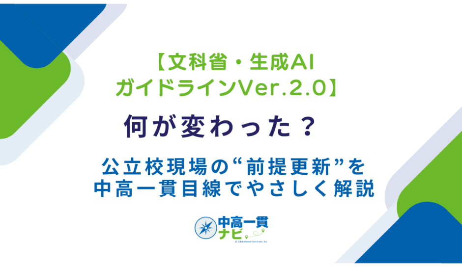 【文科省・生成AIガイドラインVer.2.0】何が変わった? 公立校現場の“前提更新”を中高一貫目線でやさしく解説