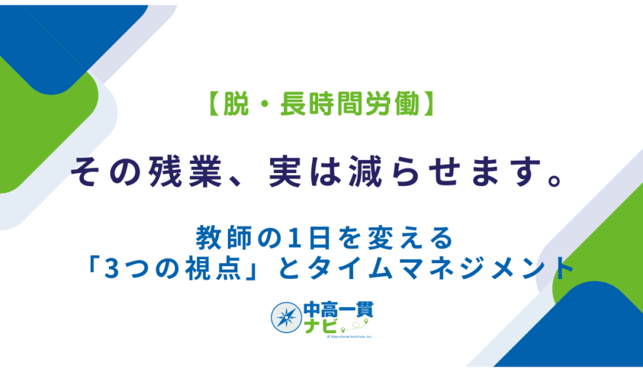 先生のタイムマネジメントは、単に仕事を速くこなすためのテクニックではありません。心に余裕を持ち、笑顔で生徒の前に立つための「自己管理」です。先生が疲弊していては、良い教育は提供できません。